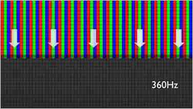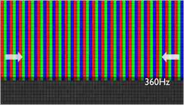 传统液晶驱动是从左到右单向进行,,在画面更新速度愈来越愈快的情况下,,位于驱动线路末端的右下角区域,,画素的闸极来不及在短时间内获得足够电压,,,无法显示出正确的颜色资讯。。